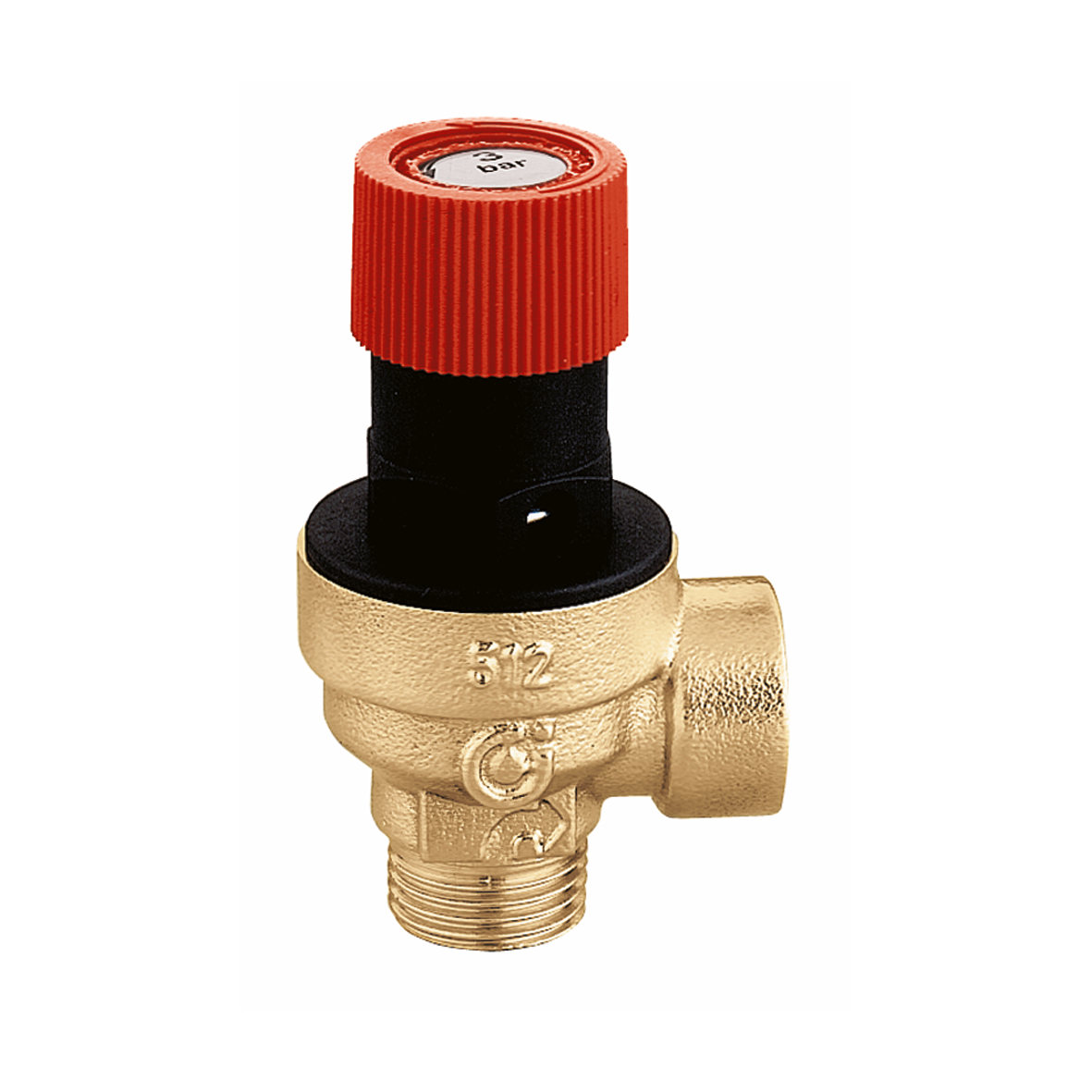 卡莱菲,514430。普通型安全阀。外-内螺连接。最大泄压压力:20% 。关闭压力:20%。口径:G 1/2" A (ISO 228-1) M。泄水接口:G 1/2" (ISO 228-1) F。耐温: 5–110 °C。设定压力:3 bar。耐压: PN 10。