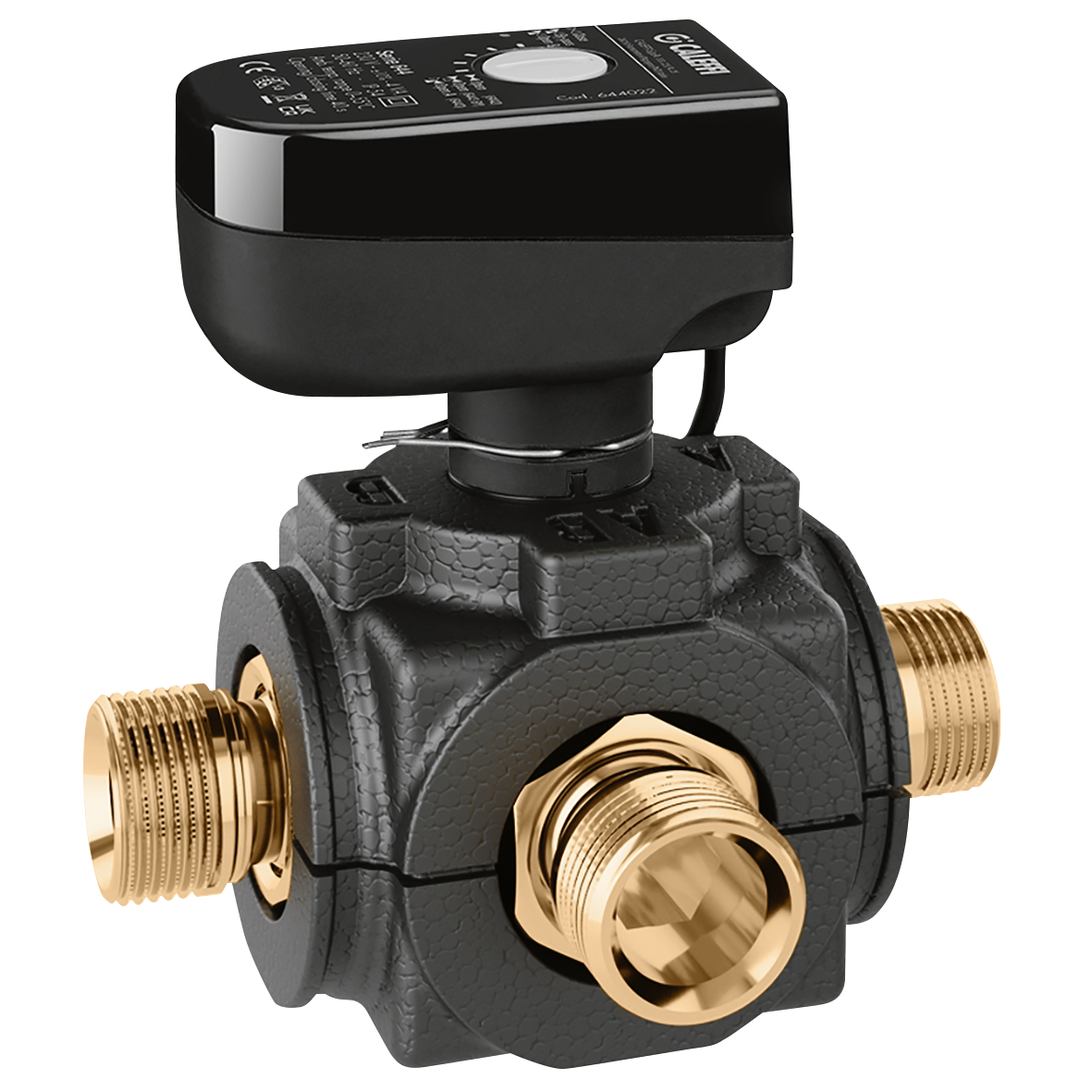 卡莱菲,644562。电动三通分流球阀。带保温壳。带辅助控制开关,insulation and anti-condensation spacer. 口径:G 1" A (ISO 228-1) M。最大工作压力:-5–110 °C。环境温度范围:0–55 °C。电源电压:230 V AC。保护级别:IP 54。供电电缆长度:1米。Kv: 9 m³/h。开关时间:40 s 。(90° 转动)。